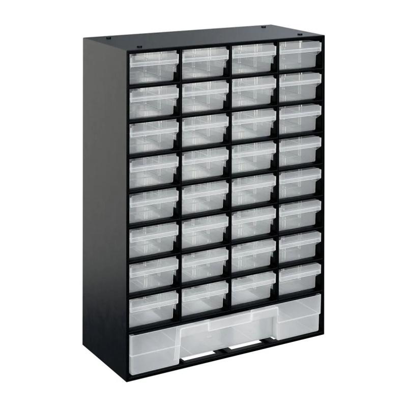 Allit VarioPlus Hobby 33Kunststoff-Kleinteile-Magazin mit 33 FächernDetails:Unterteilung mit Trennstegen möglich (32 Stück inkl.)Einschübe können mit Einsteck-Etikett beschriftet werdenFür Wandbefestigung geeignetFarbe: schwarz, transparentMaterial: Gehäuse= Polystyrol, Schubladen= PolypropylenMade in Germany!