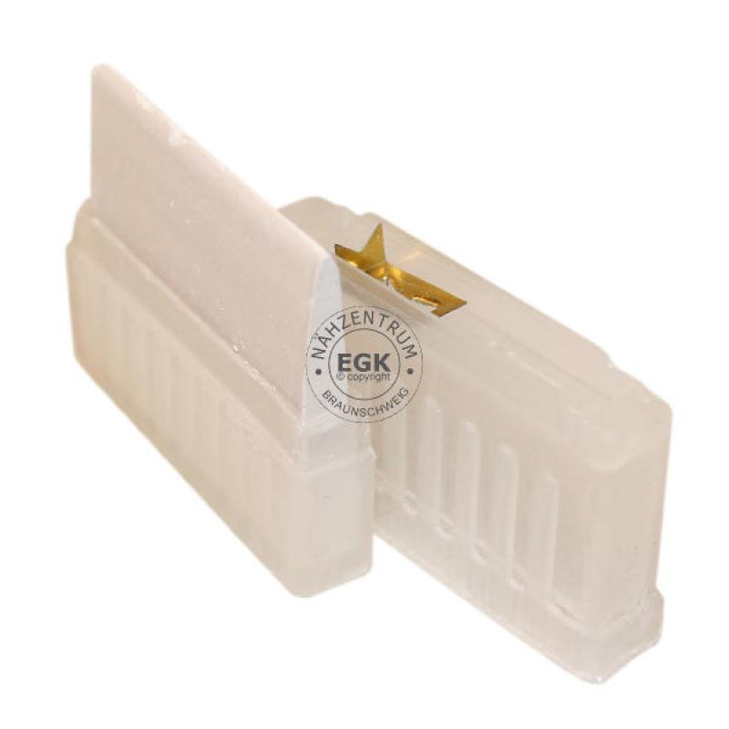 Schneiderkreide weiß mit Anspitzer # Größe: ca. 40 x 35 mm # Lieferumfang: 1 StückSchneiderkreide für Markierungen auf fast allen Stoffen.Die praktische Plastikdose verhindert schnelles Zerbrechen der Kreide und die Hände bleiben sauber.Im Deckel der Dose befindet sich ein Anspitzer für die Kreide.